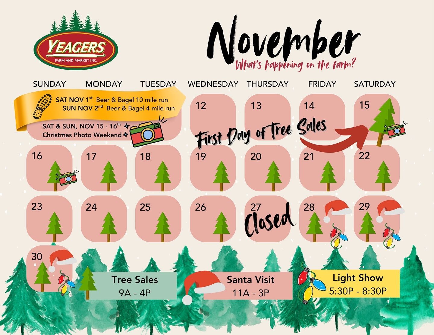 11/16 1pm, 12/6 1:30pm & 12/7 1pm Froehlics Farm I Furlong ($25/Family; Maximum 6 people)